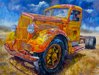 "Me gusta pintar historias del pasado. El orgulloso rostro arrugado de un indio americano y la ropa hermosa, hecha a mano, que usa, un camión oxidado abandonado hace mucho tiempo en un campo de trigo soleado... Cada cuadro contrasta con el diseño elegante de la vida moderna; cada pintura nos recuerda una historia que una vez escuché, sentado en el regazo de nuestro abuelo, tomando un vaso de limonada".