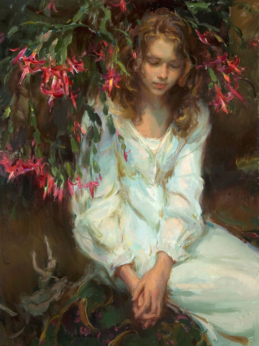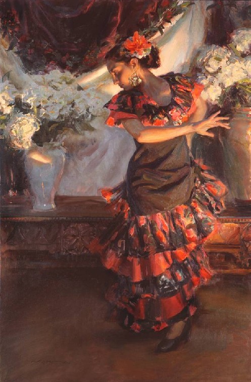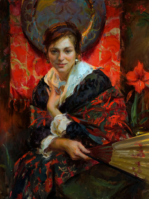 Muchas de sus figuras visten con ropaje dramático que, a menudo, se inventa por su atractivo estético y la calidad lírica, inspirado por maestros rusos, europeos y americanos, que incluyen a Nicolai Fechin, John Singer Sargent, Joaquín Sorolla, Carl von Marr...
